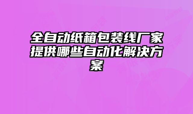 全自動紙箱包裝線廠家提供哪些自動化解決方案