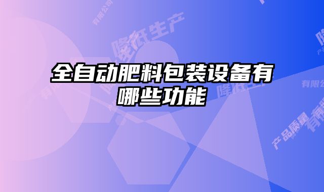 全自動肥料包裝設備有哪些功能