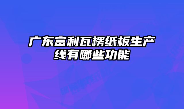廣東富利瓦楞紙板生產(chǎn)線有哪些功能