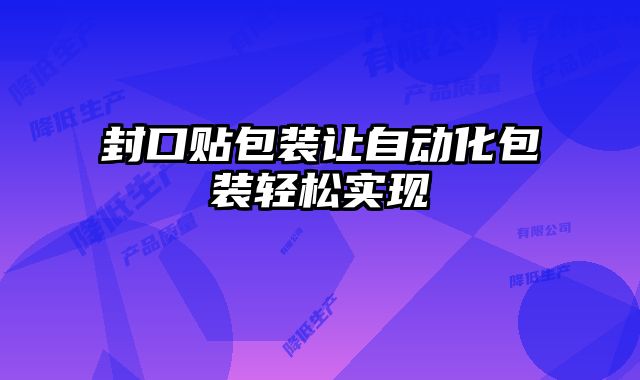 1. 封口貼包裝的優勢與應用在現代化生產中,產品包裝的自動化程度越來...