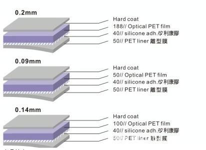 4、PET離型膜、PET基材和PET保護膜基材均為透光率達到95%以上的聚酯薄膜。